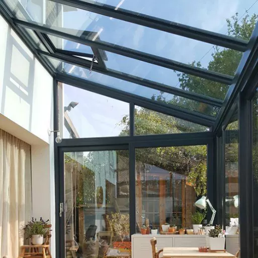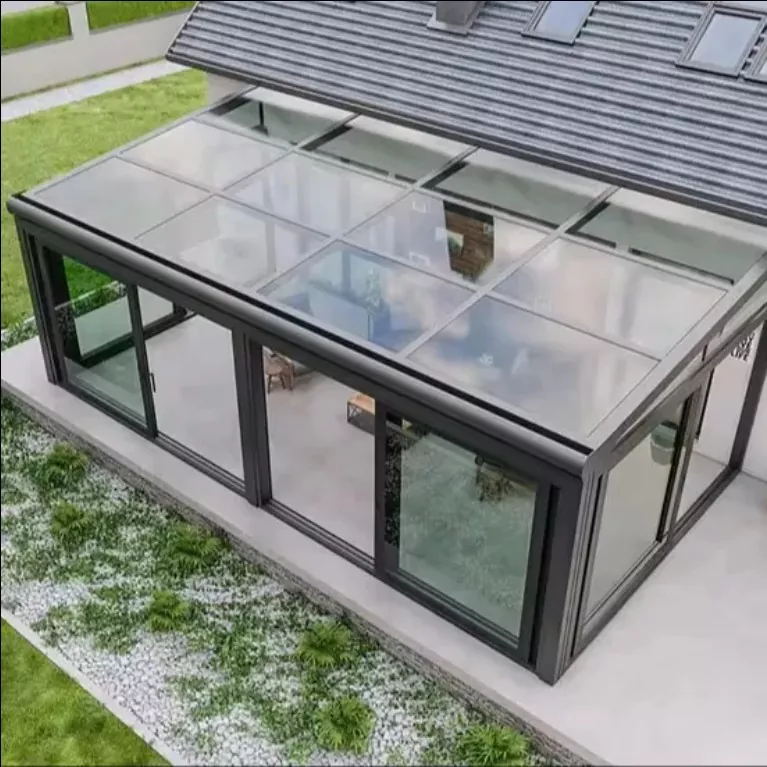 · Адаптивност за персонализиране: Поддържа персонализирани форми като извити, наклонени и плоски покриви, с множество опции за цвят на рамката, включително матирано, шампанско злато и кафе, които могат точно да съответстват на архитектурните стилове на различни сценарии, като напр. вилни тераси, дворни зони за отдих и търговски спомагателни пространства, постигайки единството на естетиката и практичност.