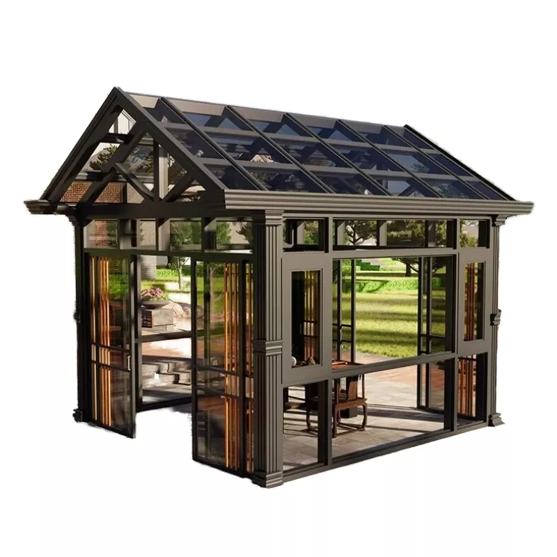 Слънчевата стая от алуминиева сплав приема цялостна рамка + стъклена композитна структура. Колоните и гредите са фиксирани от прецизни съединители, с уплътнение и водоустойчива обработка на ставите; 3%-5% дренажен наклон е запазен за върха стъкло, съчетано със скрити дренажни канали, за да се избегне натрупване на вода и изтичане; цветовете на рамката могат да бъдат персонализирани, поддържане на различни повърхностни обработки като матирано, шампанско злато и кафе, адаптиране към различни архитектурни стилове. Комбинирайки гореспоменатата изработка и предимства, цялостният дизайн балансира практичност, безопасност и естетика и могат да бъдат прецизно персонализирани според размерите на терасата.